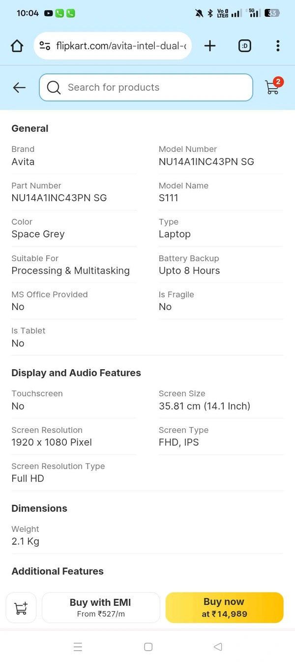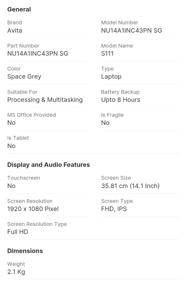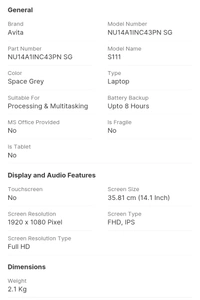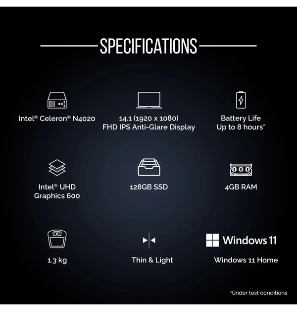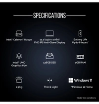 AVITA Intel dual Core N4020 Laptop celeron Dual Core ( 4GB ,128GB ) 14.1 Inchs ,SSD/Windows 11