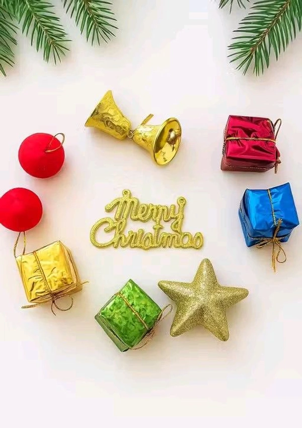 Name: AMFIN® (Pack of 11) 1 feet Artificial Pine Cone Tree with Stand & 10 Pcs Mix Multicolor Hanging Ornament Box (Including Gifts, Drums) / Xmas Tree Decorations Items Combo