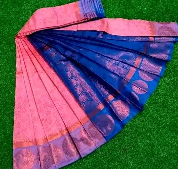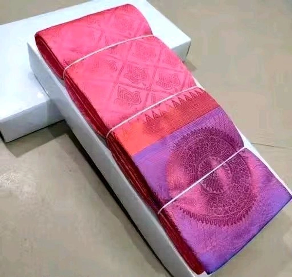 Name: Get This Ravishing Kanjeevaram Brocade Pattu Silk Saree With Grand Rich Pallu and Separate Blue Blouse Piece