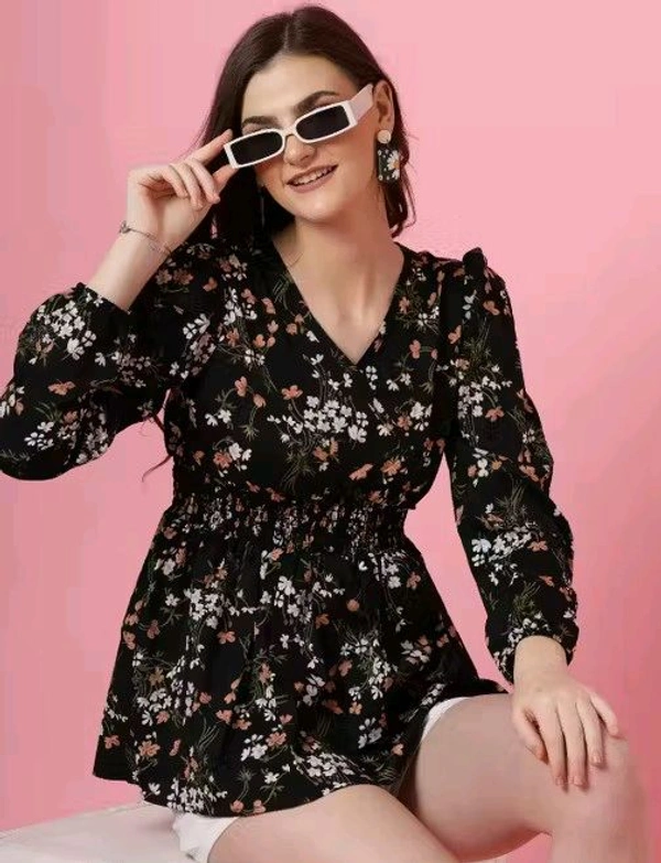 Name: Honky Tonky Black Floral Print Peplum Top