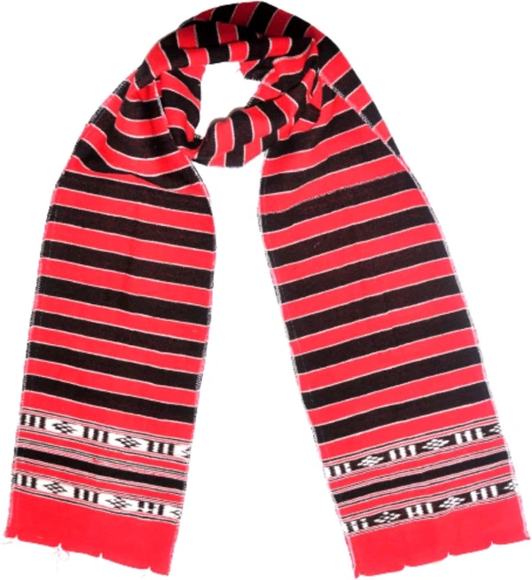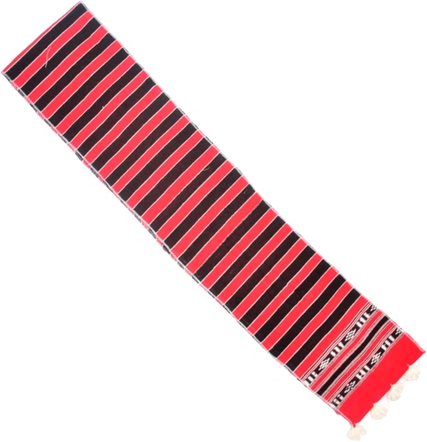Karbi Muffler/Scarf/Stole or Poho is worn around the head or used as a muffler.Handwoven in Red colour & Black Stripe