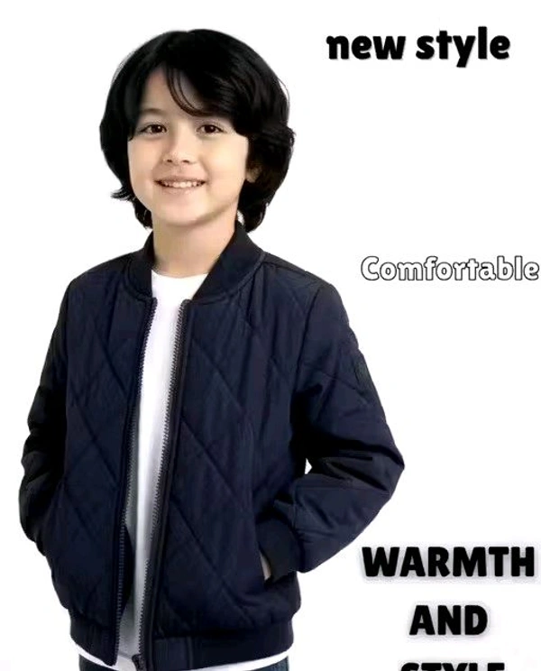 This stylish Navy Quilted Bomber Jacket is the perfect blend of warmth and contemporary style for children.