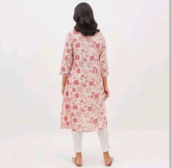 Mavie Women's Soft Pink Notch Neck Floral Printed Kurta