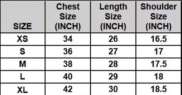 XL (Chest Size: 42 in, Length Size: 30 in)