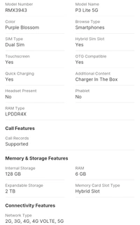 Realme P3, Lite 5G( 6GB Ram ,128GB )
