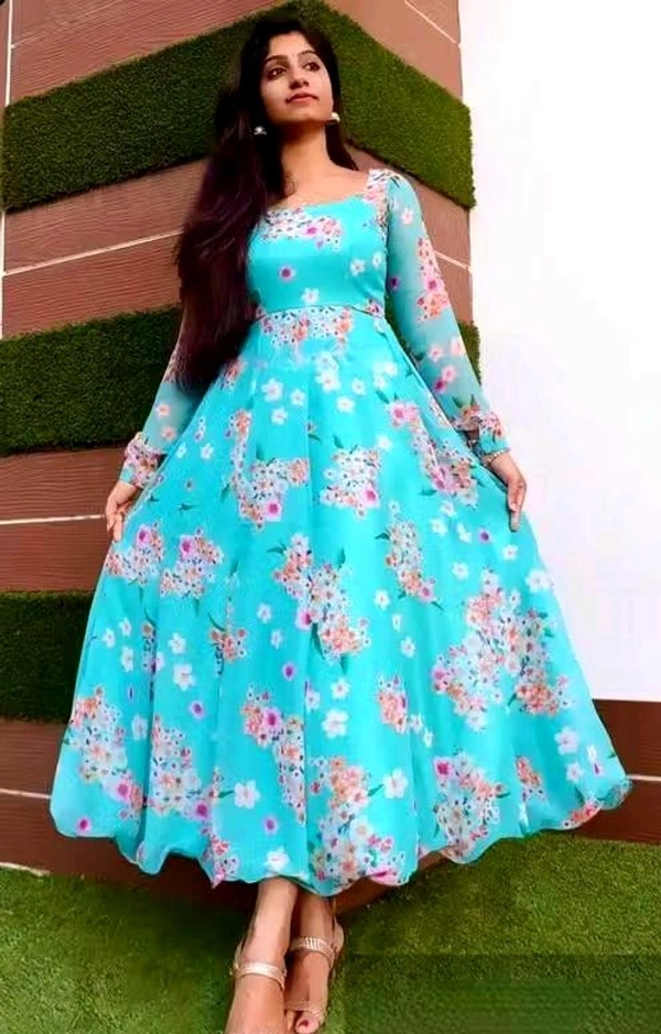 Name: sky blue colour printed georgette dress