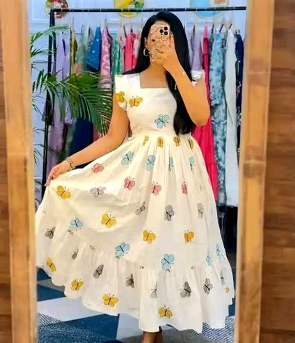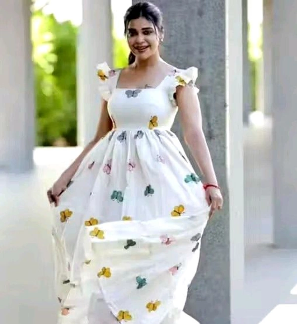 Beautiful white colour gown with butterfly print so gorgeous and cotton fabric so beautiful quality is so good