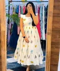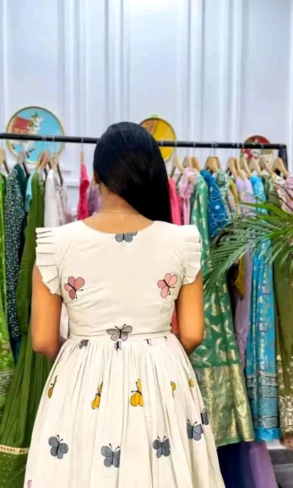 Beautiful white colour gown with butterfly print so gorgeous and cotton fabric so beautiful  quality is so good
