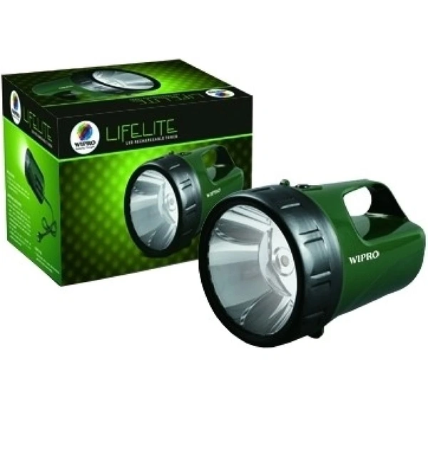 Wipro Lifelite Rechargable Torch with 2 step dimming| 3000 mAh Battery | 10 Hrs Back Up | Bright Output with 5w LED Light | Long Range LED Torch for Outdoor activities, Home, Camping, Hiking | Pack 1